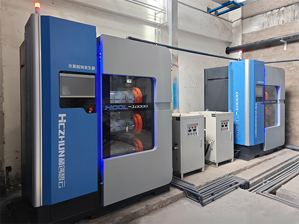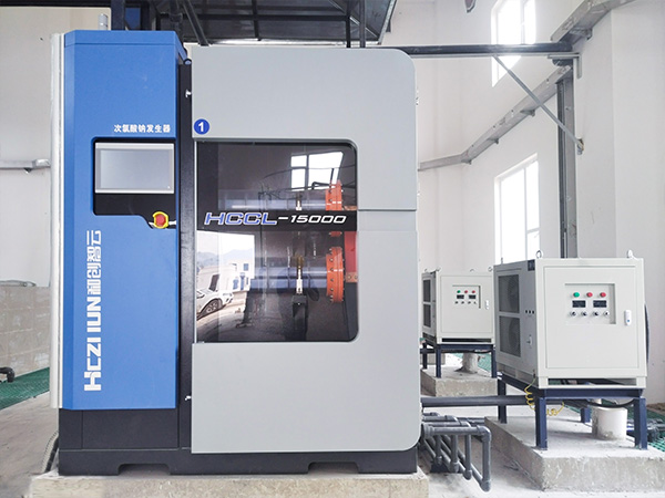 采用無隔膜電解法電解稀鹽水,在線制備低濃度次氯酸鈉溶液的裝置。具有原料易得、產(chǎn)物純凈、安全可靠的特點。適用于各類氯化消毒水處理。
